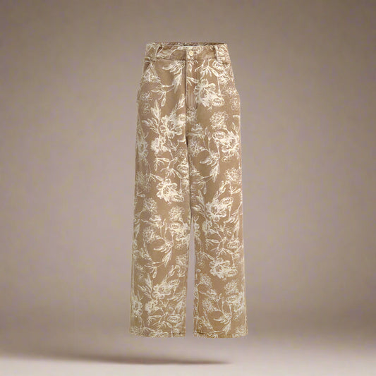 Wide Leg Pant in Tan and Leopard Paisley