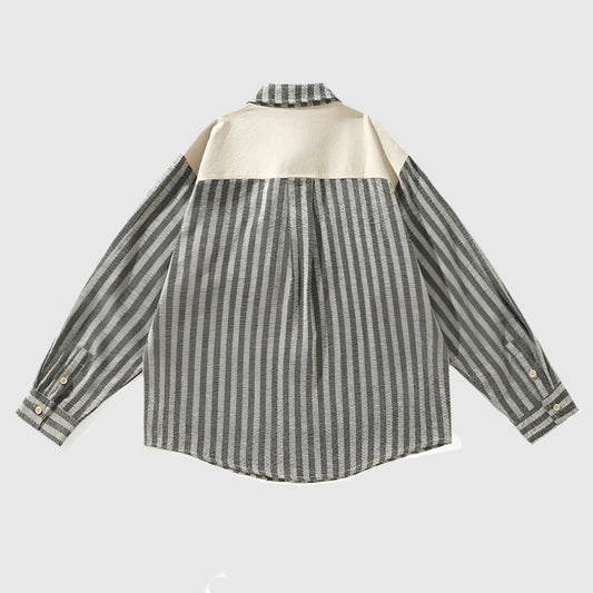 Plaid Shirt Loose Contrast Color Asymmetric Shirt