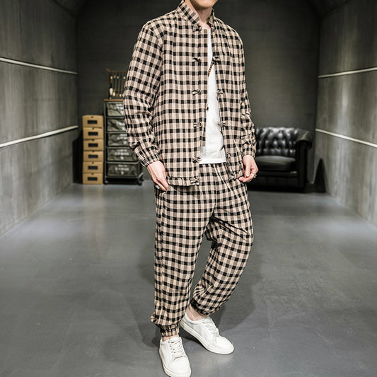 Hanfu-Inspired Gingham Set (Jacket + Pants)