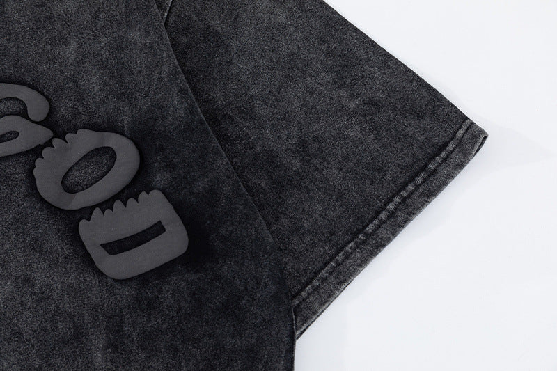 Cut with a relaxed fit in washed cotton jersey, this tee stands out with bold, raised puff-print graphics—arched “TRUST GOD” across the chest and a circular back hit. Finished with a classic crew neck, drop shoulders, easy short sleeves, and a straight hem for everyday comfort.
